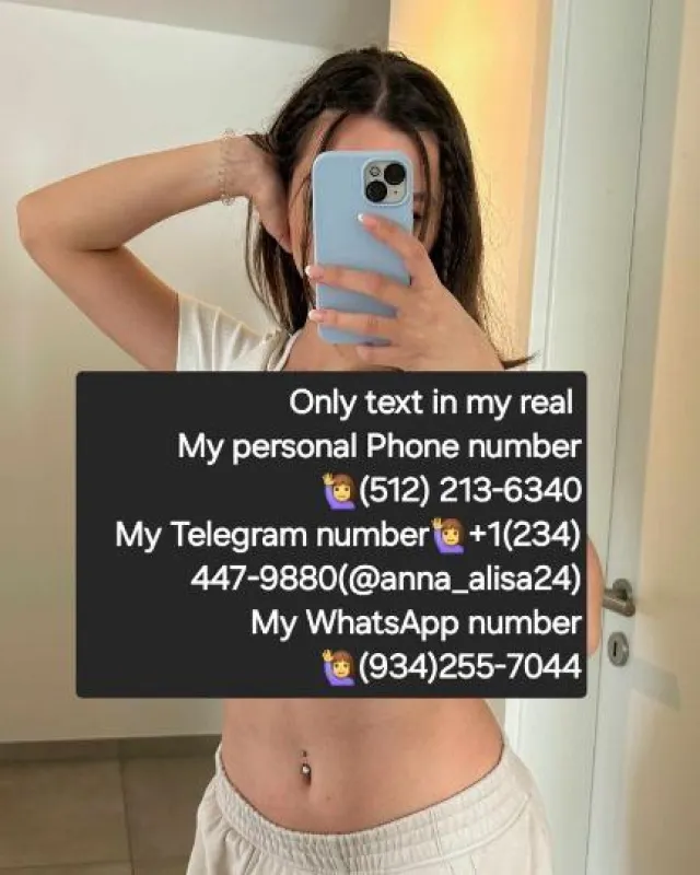 😍I'm available for incall, outcall and carplay. You will get the best bbj all service💯 ◕👉Bbj, ✔oral, ✔Anal ◕👉Bare back sex ◕👉I sell photos and videos.✔ ◕👉Raw, ✔Dogy style sex ◕👉Bbw,✔69 position, ✔420 freindly, ✔Car Fun 💕Gfe ◕👉Nuru massage ✔Kissing ✔ Penis massage ✔ Sucking penis ◕👉Selling Any picture and video ◕👉Not a cop, No drama n no games / bs I'm serious for sex💯 ◕👉Special service for old guys◕👉◕👉I'm also looking for regular playmate and Serious relationship◕👉 ◕👉I'm available text me my social media 1st reply ✅ 👉Please only text me in my right telegram for aboiding BS ,Use my right user telegram number or user name or QR name 👉Text me on my My real Telegram 👉@alisa_anna24👉 My real Telegram link👉https://t.me/anna_alisa24 🌹My real Telegram number👉(234) 447-9 880 🌹My WhatsApp number👉(934) 255- 7 044 ✅Text My New phone number👉(512)213-6 340✅ ◕👉Same price and same location for regularplamate ✅ ◕👉New clients text me for more info◕👉